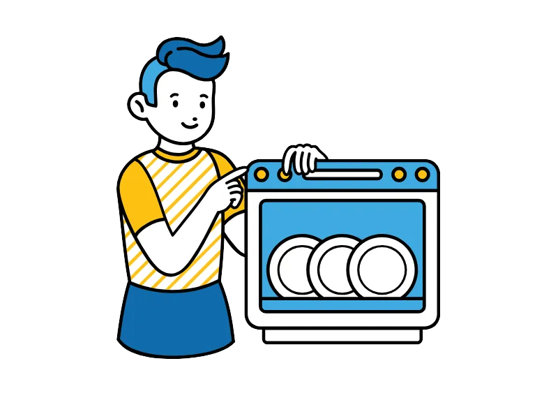 First you’ll need to insert one into the flip box container on the inside of the dishwasher door. Then press the program button of your choice - there are a few settings which are obvious - then press the start button.